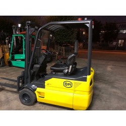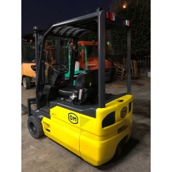 Carrello elevatore eettrico Usato Ricondizionato OM XE18-3 Ac, montante sollevamento Triplex gal 4300, traslatore integrato, coppia forche, gomme superelastiche, batteria trazione 48V, Caricabatterie.