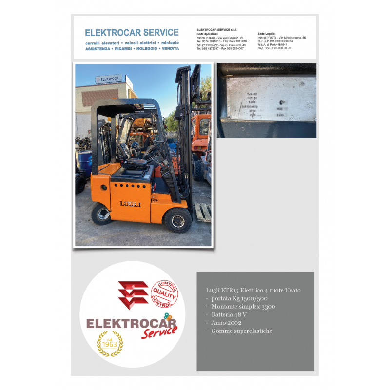 Carrello elevatore elettrico Lugli ETR15 portata 1500@500 ricondizionato 2000
